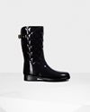 Hunter Kurze Regenstiefel Damen - Refined Slim Fit Adjustable Gloss Schwarz - Germany HXE-387592